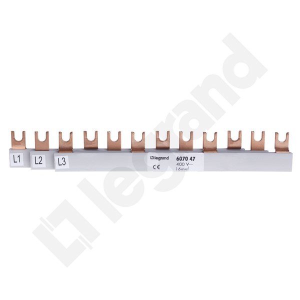 Szyny łączeniowe o przekroju 16 mm2, przystosowane do zasilania w napięciu 230/400 V, zapewniają efektywne połączenie dla urządzeń trójbiegunowych.