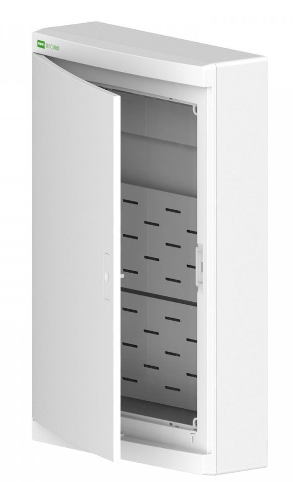 Rozdzielnica natynkowa wykonana jest z blachy stalowej, w kolorze białym (RAL 9016). Drzwi mogą być montowane prawo/ lewo – uniwersalnie dostosowując rozdzielnię do potrzeb montażowych w pomieszczeniu. Rozdzielnica Elegant 2445-20 wyposażona jest wewnątrz ażurową płytę, umożliwiającą montaż do niej elementów wyposażenia. Model ten posiada również 1 gniazdo 45×45 2P+Z 16A 250V.