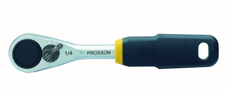 Professional PROXXON ratchet for bits, made of chrome-vanadium steel 31 CrV 3. Very flat! With a switch and a magnetic insert.