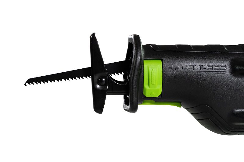 The reciprocating saw features an ergonomic design with a vibration dampening system. Its maximum cutting depth is 210 mm, and the stroke length of the blade is 28 mm. The speed is smoothly adjustable, and a safety button prevents accidental activation. The innovative brushless motor extends the tool’s lifespan by 40% compared to brushed models.