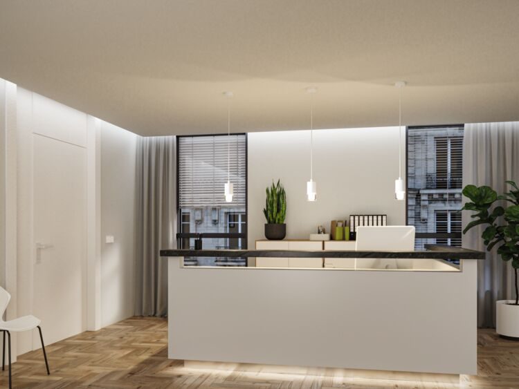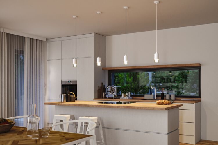 Modern and functional hanging fixture for the bathroom, designed to illuminate spaces in a minimalist style.
