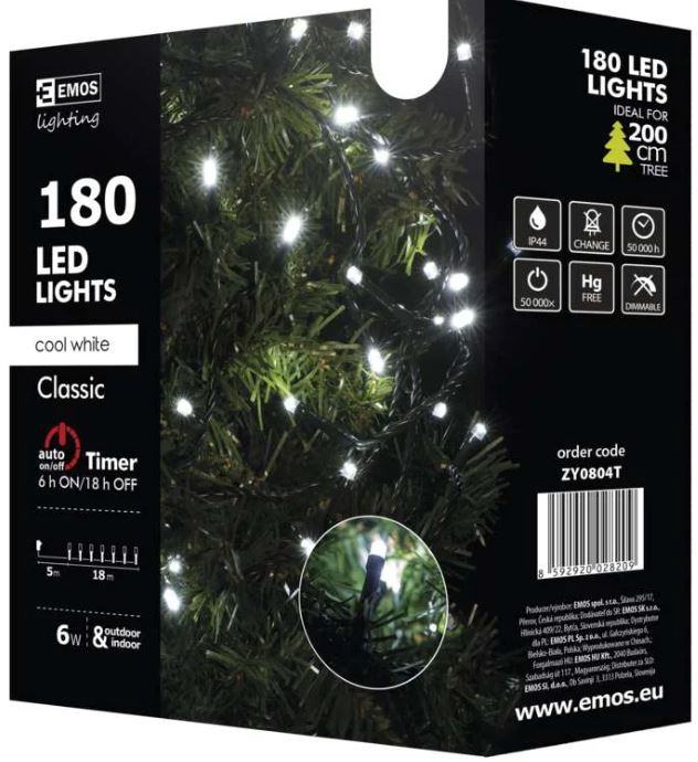 Christmas Lights 180 LED CW 18M Green Cable, Timer