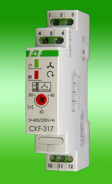 The CKF-317 phase sequence and failure sensor provides effective protection for electric motors against the effects of voltage loss and voltage asymmetry between phases.