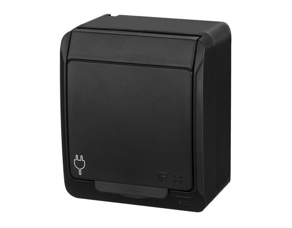 HERMES BLACK SOCKET NT 1X Z/U WITH FLAP 2P+Z IP44 SCREW TERMINALS 16A 250V