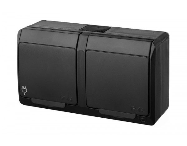 HERMES BLACK SOCKET NT 2X Z/U WITH FLAP IP44 2X2P+Z SCREW TERMINALS 16A 250V
