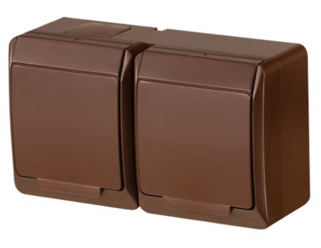 HERMES BROWN SOCKET NT 2X Z/U WITH FLAP IP44 SCREW TERMINALS 16A 250V