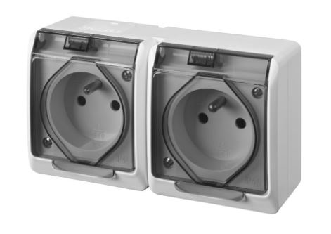 HERMES WHITE SOCKET NT 2X Z/U WITH SMOKY FLAP IP44 SCREW TERMINALS 16A 250V