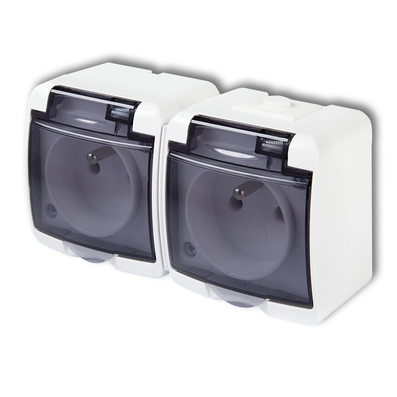 JUNIOR WHITE SOCKET NT 2X Z/U WITH SMOKY FLAP IP54 SCREW TERMINALS 16A 250V