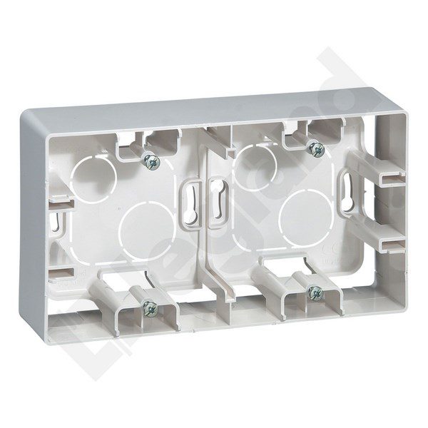 Double surface mount box – White, ideal for horizontal or vertical installation.