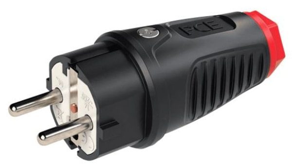Portable Plug 1F Z/U 230V IP54 Rubber Uni-Schuko Black with Red Ring Taurus2