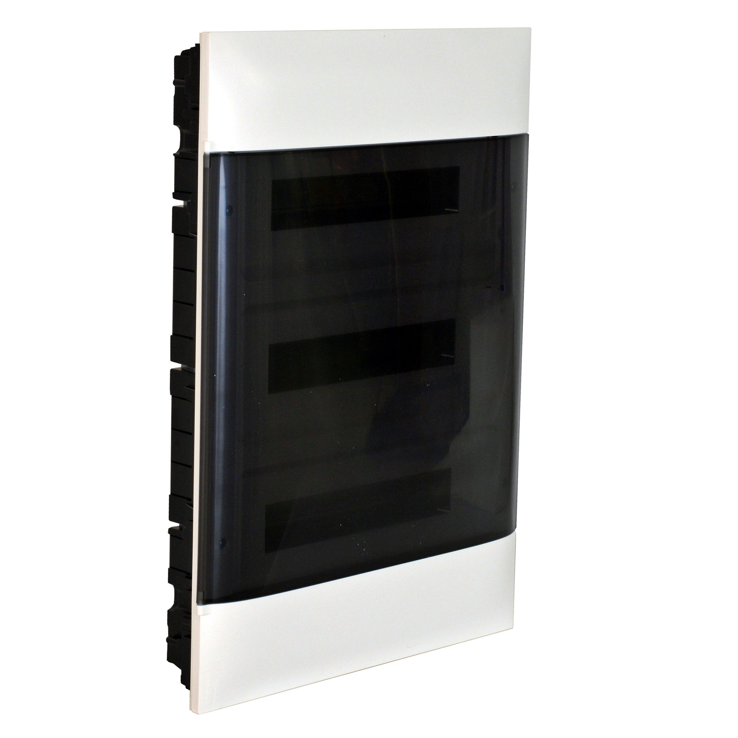 PRACTIBOX S PLASTIC DISTRIBUTION BOARD PT 54M 3X 18M N+PE IP40 IK07 615X436X103 SMOKED DOORS WHITE
