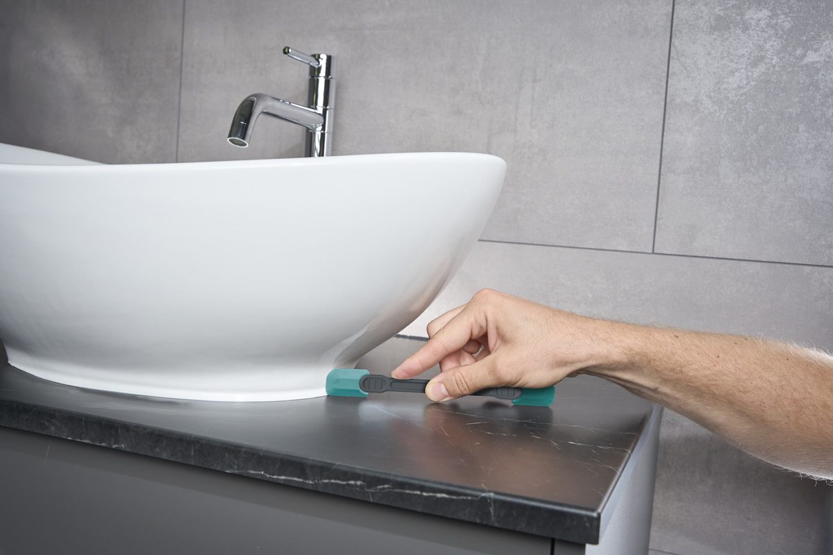 The PRO FINE smoother for leveling silicone and acrylic joints is perfect for work in hard-to-reach places. The handle, made of durable plastic reinforced with fiberglass (GFK), is equipped with a round profile smoother with integrated radii of 5 and 10 mm, as well as an edge profile smoother with integrated widths of 6, 10, and 12 mm. The smoothers are made of easy-to-maintain, flexible plastic. It allows for effortless collection of silicone and acrylic residues without leaving marks. The finger indentations ensure an optimal grip position during work.