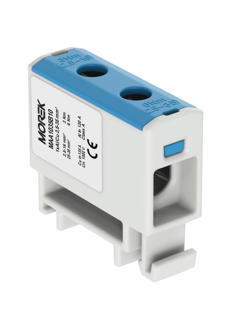 Rail connector through 1x AL/CU 2.5-35.0mm2 1000V AC/1500V DC universal clamp blue