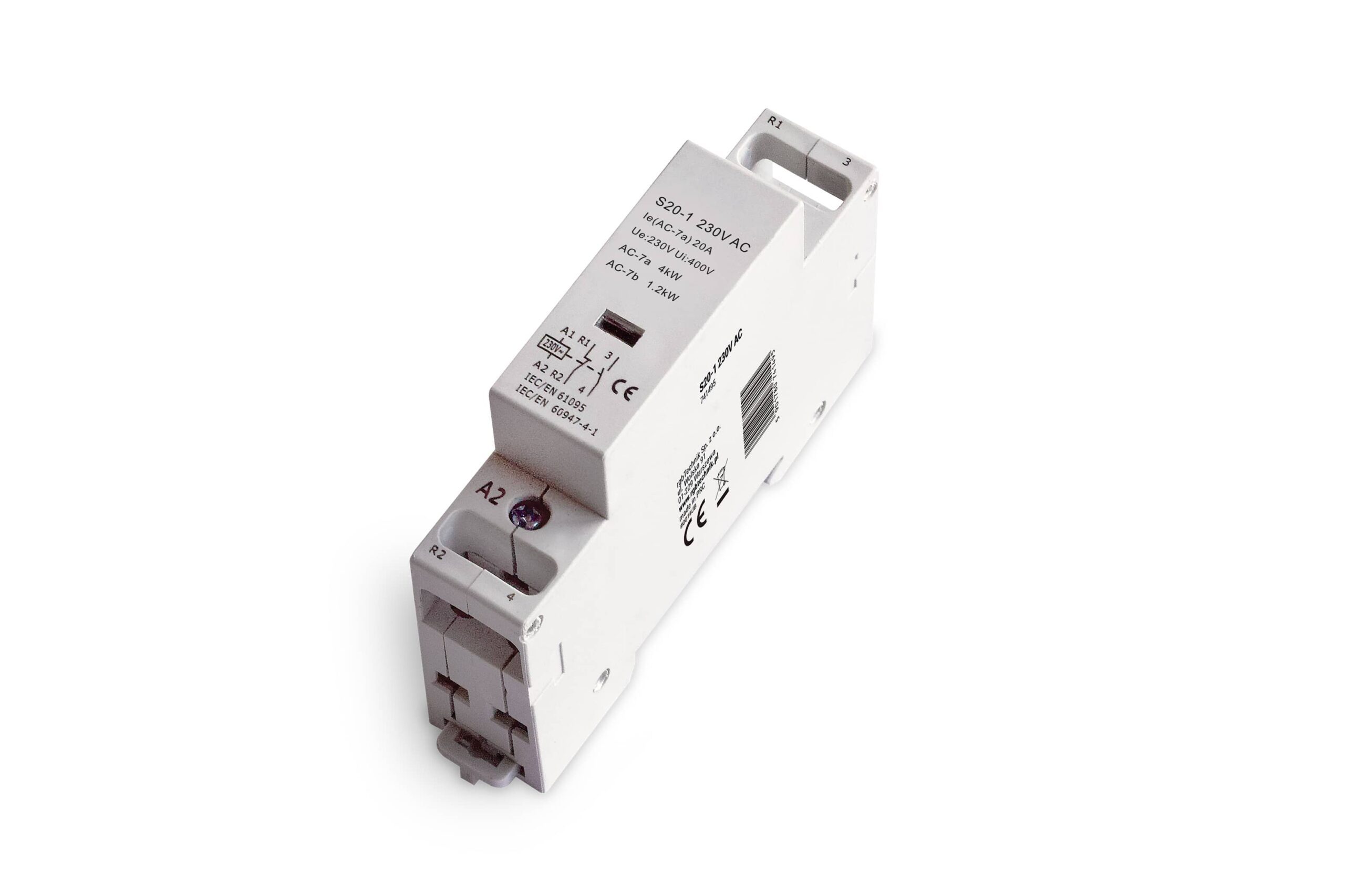 The S20-1 modular contactor is a reliable device with a high switching capacity, making it ideal for various industrial and domestic applications.