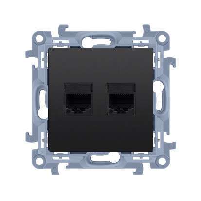 SIMON 10 Black Matte Computer Socket Module 2x UAE 8 Cat. 6 UTP Flat