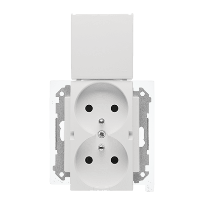 SIMON 55 MODULE WHITE MATT SOCKET 2X Z/U WITH FLAP IP44 SPRING TERMINALS 16A 250V