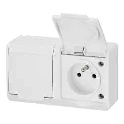 JUNIOR WHITE SOCKET NT 2X WITH SWITCH WITH SMOKE FLAP IP54 SCREW TERMINALS 16A 250V
