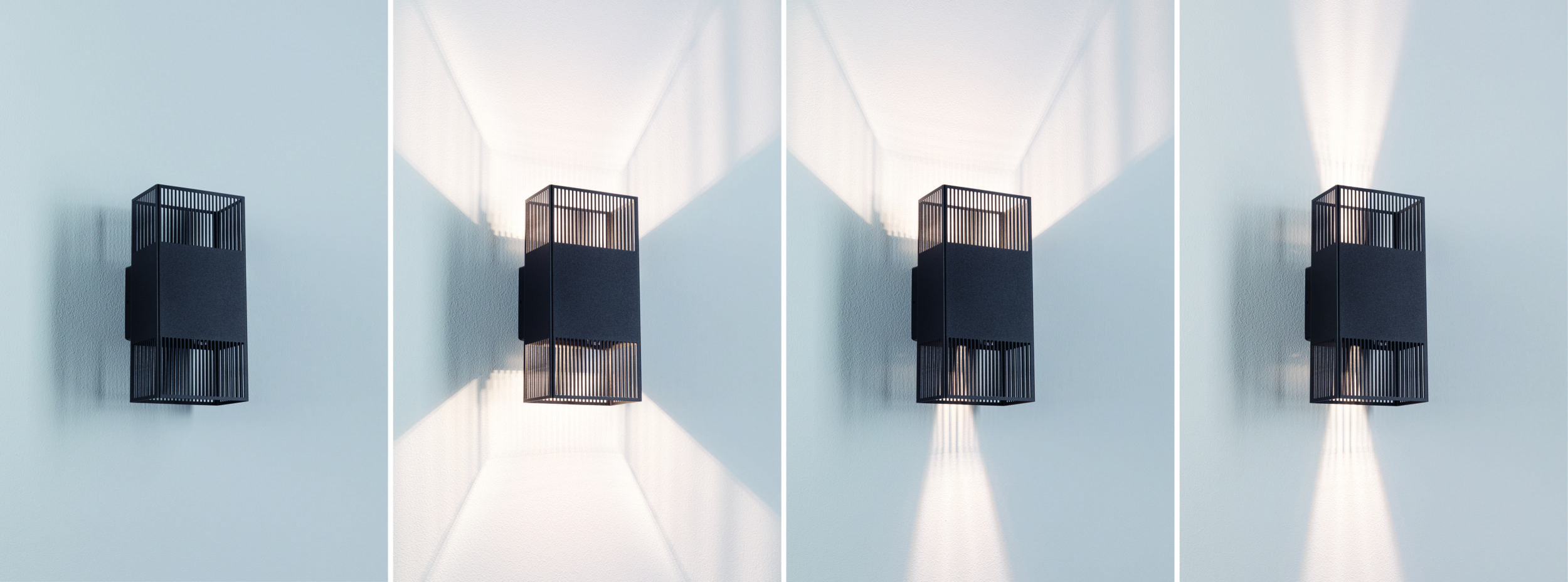 Thanks to the independent adjustment of the light shields, it is possible to precisely set the angle of light distribution in both directions – from narrow to wide beam. This allows for perfect adaptation of the light effect to the character of the space and achieving attractive light accents on the facade or indoors.