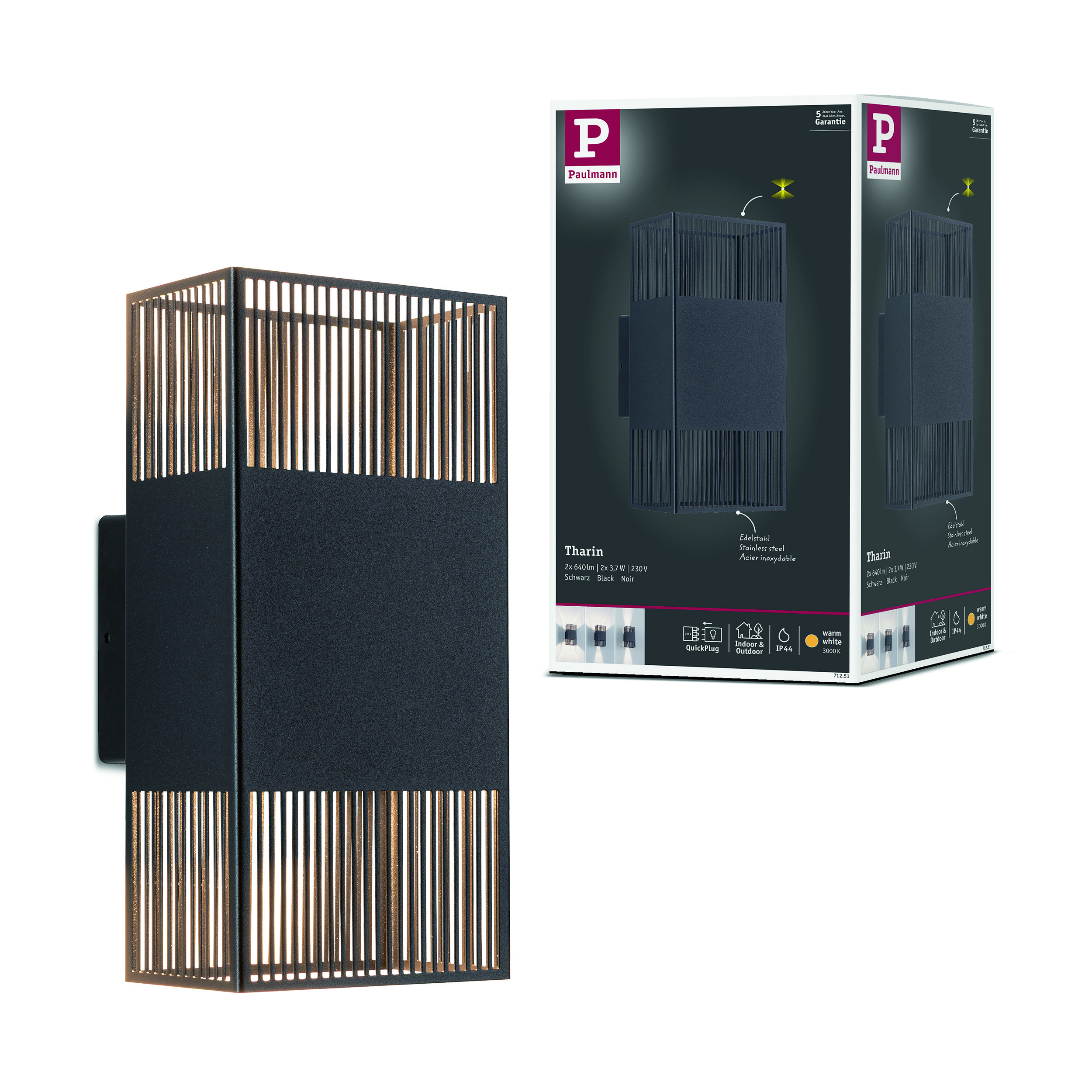 The Paulmann Tharin 71251 is a decorative and functional LED wall light designed for installation on building facades, balcony walls, covered terraces, as well as in residential and commercial interiors such as bathrooms, halls, or corridors. The housing is made of high-quality stainless steel in black, ensuring durability, resistance to external factors, and a modern, minimalist appearance.