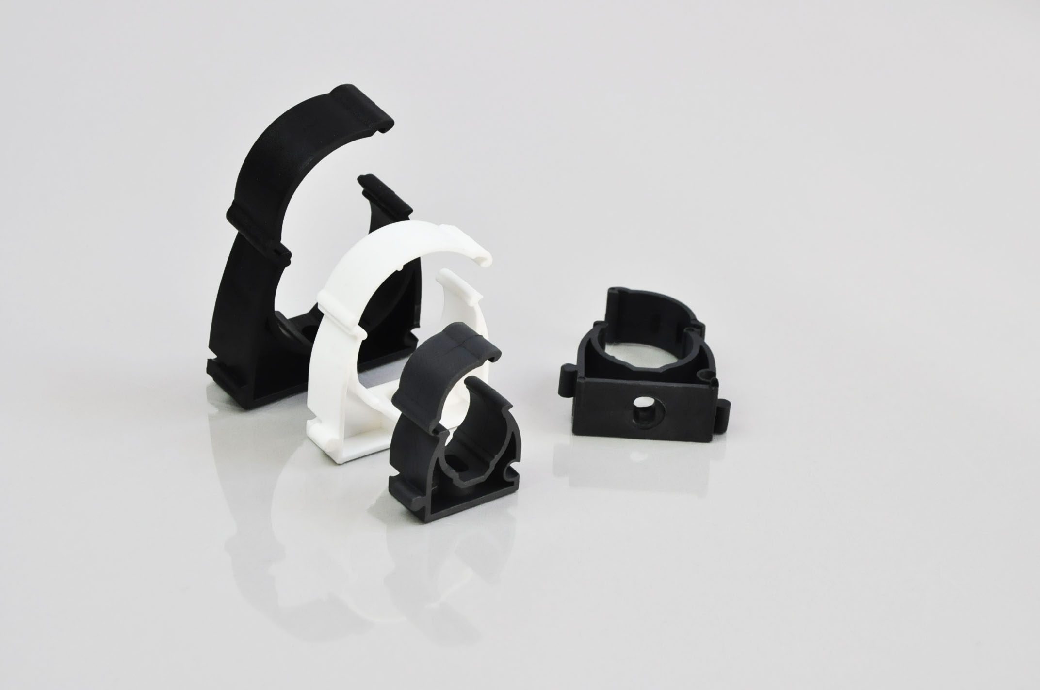 Lockable bracket fi20 in black color, ideal for stable mounting of installation pipes.