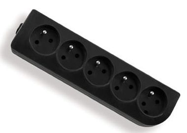 Gniazdo przenośne 5-krotne, 5x2P+Z 250V~/16A czarne z otworami do montażu.