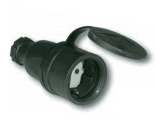 Gniazdo Przenośne 1F Z/U Proste Gumowe IP44 16A 230V Czarny z Zatyczką Pierścień Czerwony Taurus2