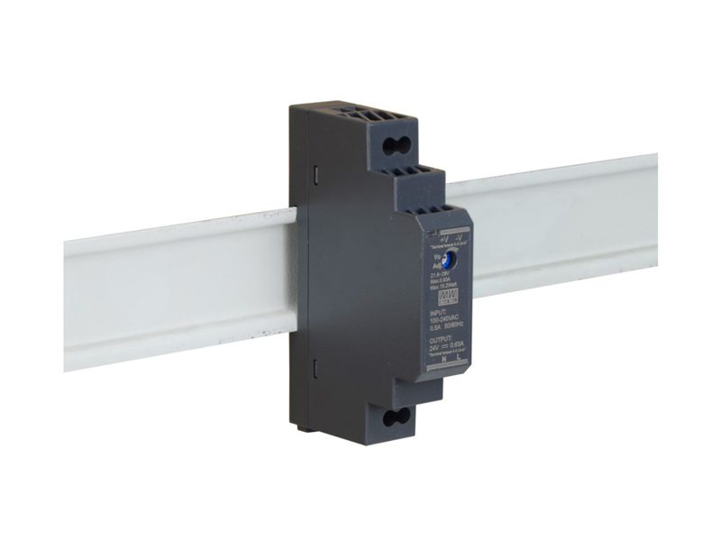Wydajny zasilacz na szynę DIN od Meant Well, idealny do różnych aplikacji elektrycznych.