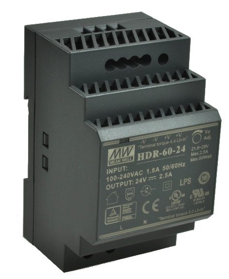 Zasilacz HDR na szynę DIN od Mean Well o mocy 60W to niezawodne źródło zasilania dla aplikacji przemysłowych.