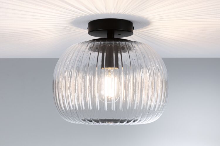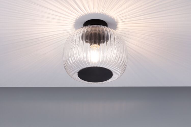 Lampa sufitowa łazienkowa RUYA E27 max.60W IP44 czarny matowy / szkło