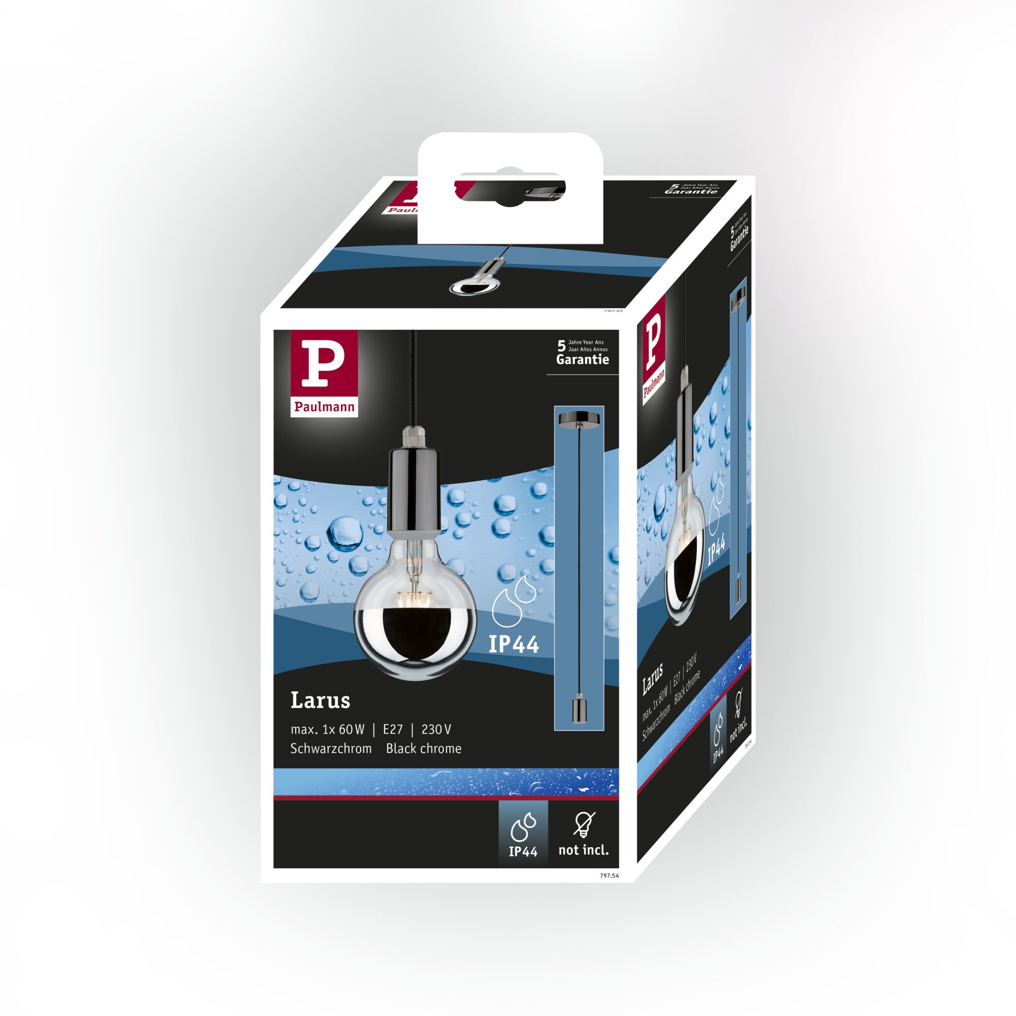Lampa wisząca LARUS E27 max. 60W IP44 230V czarny chrom / metal
