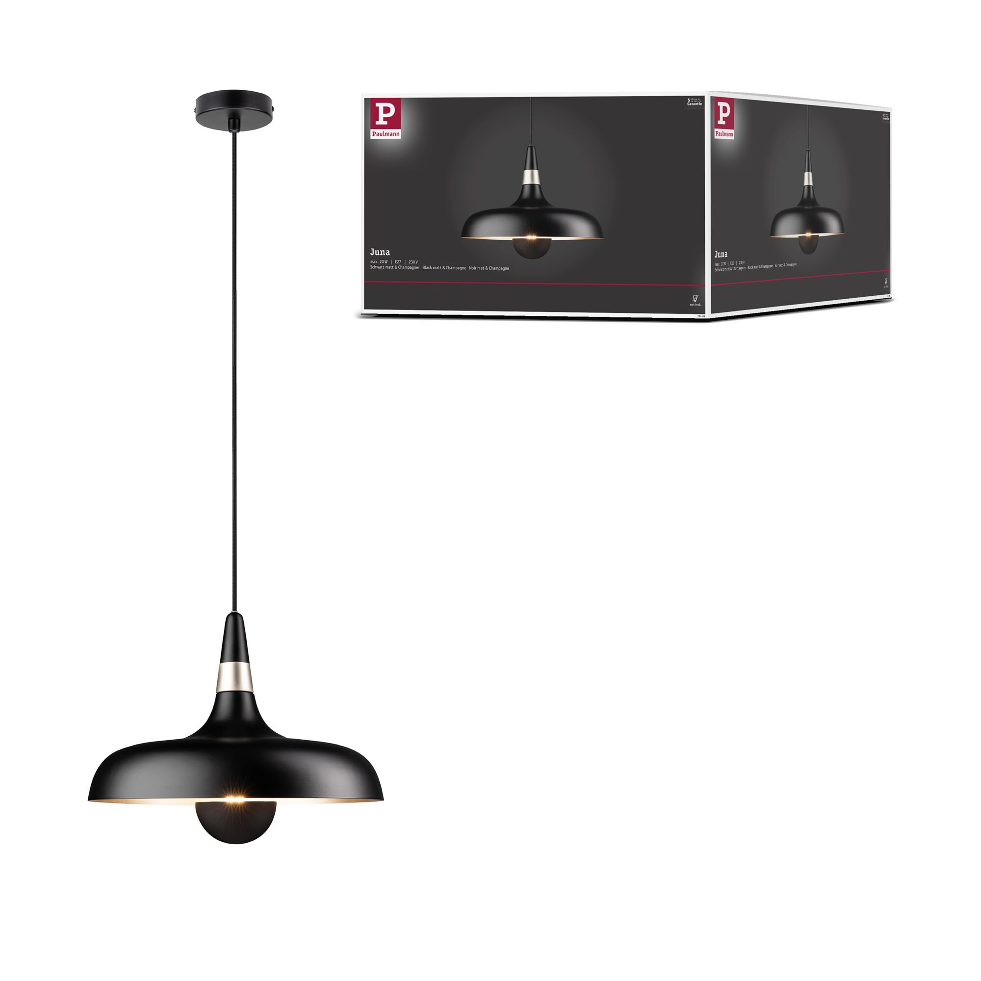 Lampa wisząca Neordic Juna 342mm max.20W E27 DIM 230V czarny mat / szampan / metal