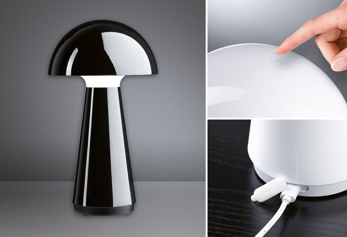 Mobilna lampka stołowa akumulatorowa ONZO LED DIM USB-C to niezwykle praktyczne i eleganckie rozwiązanie o wyjątkowej funkcjonalności. Bezkonkurencyjna zarówno wewnątrz, jak i na zewnątrz pomieszczeń, ta lampa LED o stopniu ochrony IP44 w kolorze czarnego połysku to idealny dodatek do Twojego wnętrza lub ogrodu.