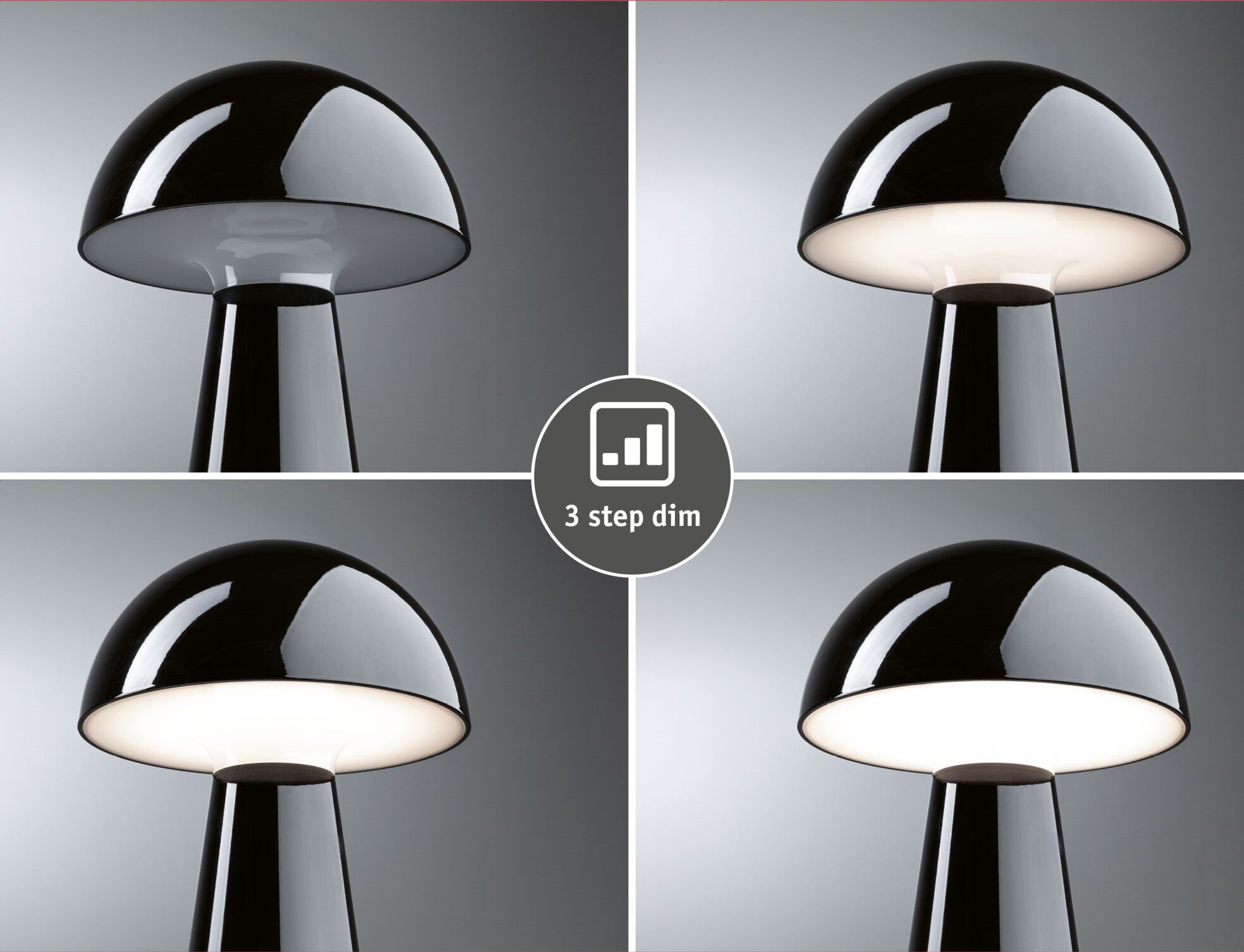 Lampka stołowa akumulatorowa ONZO LED 3-STEP DIM USB-C 2.6W 240lm 2700K IP44 czarny połysk / tworzywo sztuczne
