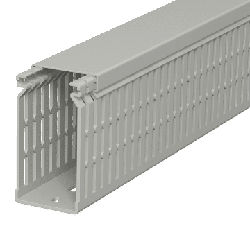 Kanał grzebieniowy z pokrywą i perforacją dna, przetłoczenia grzebieni zapobiegają wypadnięciu przewodów.