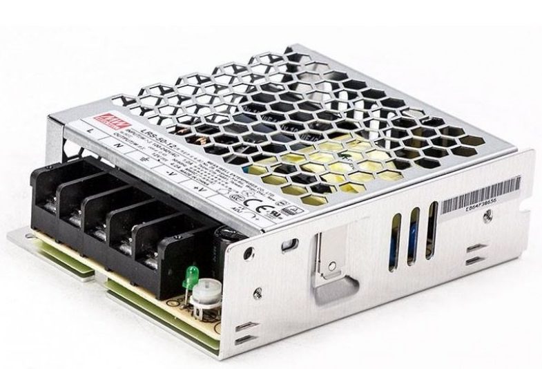 Zasilacz impulsowy LRS o mocy 50W, przeznaczony do zastosowań przemysłowych, charakteryzujący się dużą efektywnością oraz stabilnością napięcia.