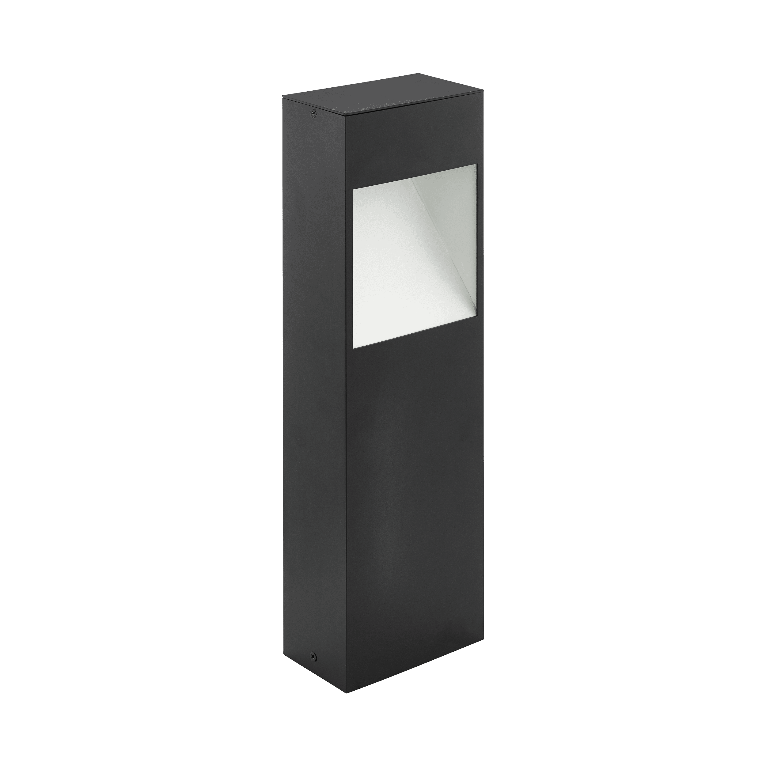 Lampa stojąca zewnętrzna, słupek serii Manfria. Wykonana z aluminium w kolorze antracytowym z białym środkiem, idealnie nadaje się do oświetlenia przestrzeni zewnętrznych.
