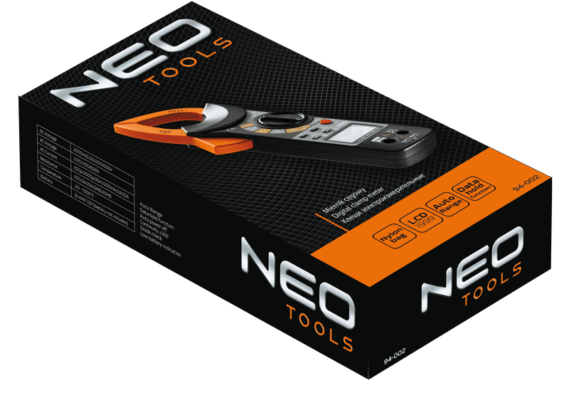 Miernik cęgowy NEO (nr ref. 94-002) to wielofunkcyjne urządzenie, które ułatwia przeprowadzanie precyzyjnych pomiarów elektrycznych.
