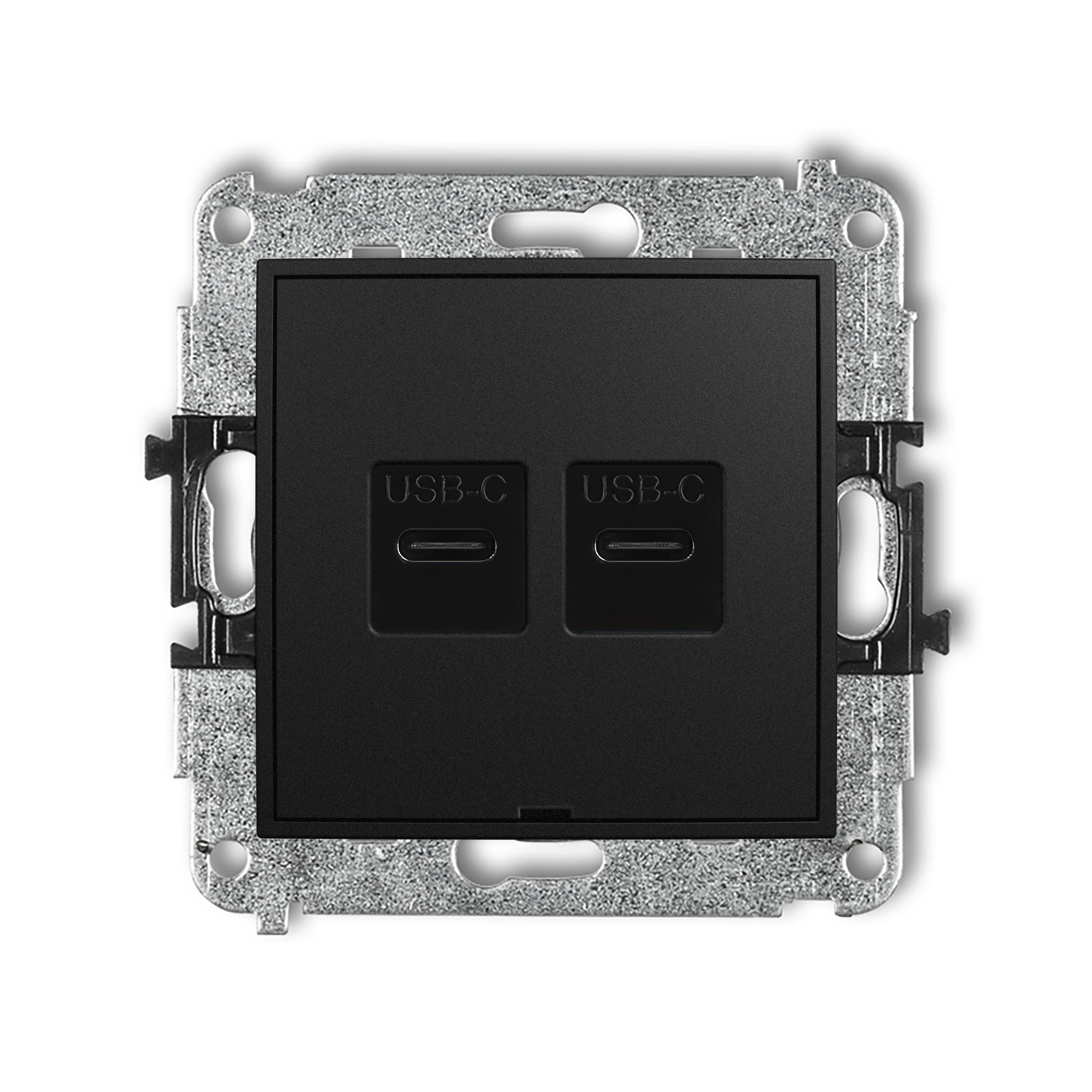 Mini Moduł Czarny Mat Gniazdo Ładowarka 2x USB Typ C 20W 5V 3.1A Quick Charge Zaciski Śrubowe