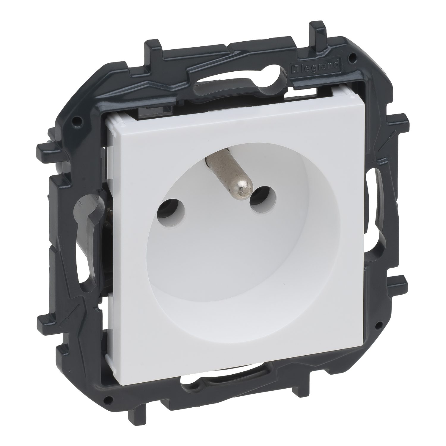 Mechanizm wymaga uzupełnienia o ramkę. Solidny plastikowy uchwyt podtynkowy zapewnia wysoką sztywność i odporność. System nacięć ułatwia montaż w konfiguracji wielokrotnej, a uchwyty podtynkowe idealnie się łączą, co usprawnia instalację. Produkt przeznaczony jest wyłącznie do użytku wewnętrznego. Kolor – biały matowy.