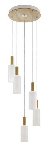 OAKHAM Brązowy/Biały Oprawa Wisząca 5x E27/40W IP20 Drewno/Stal
