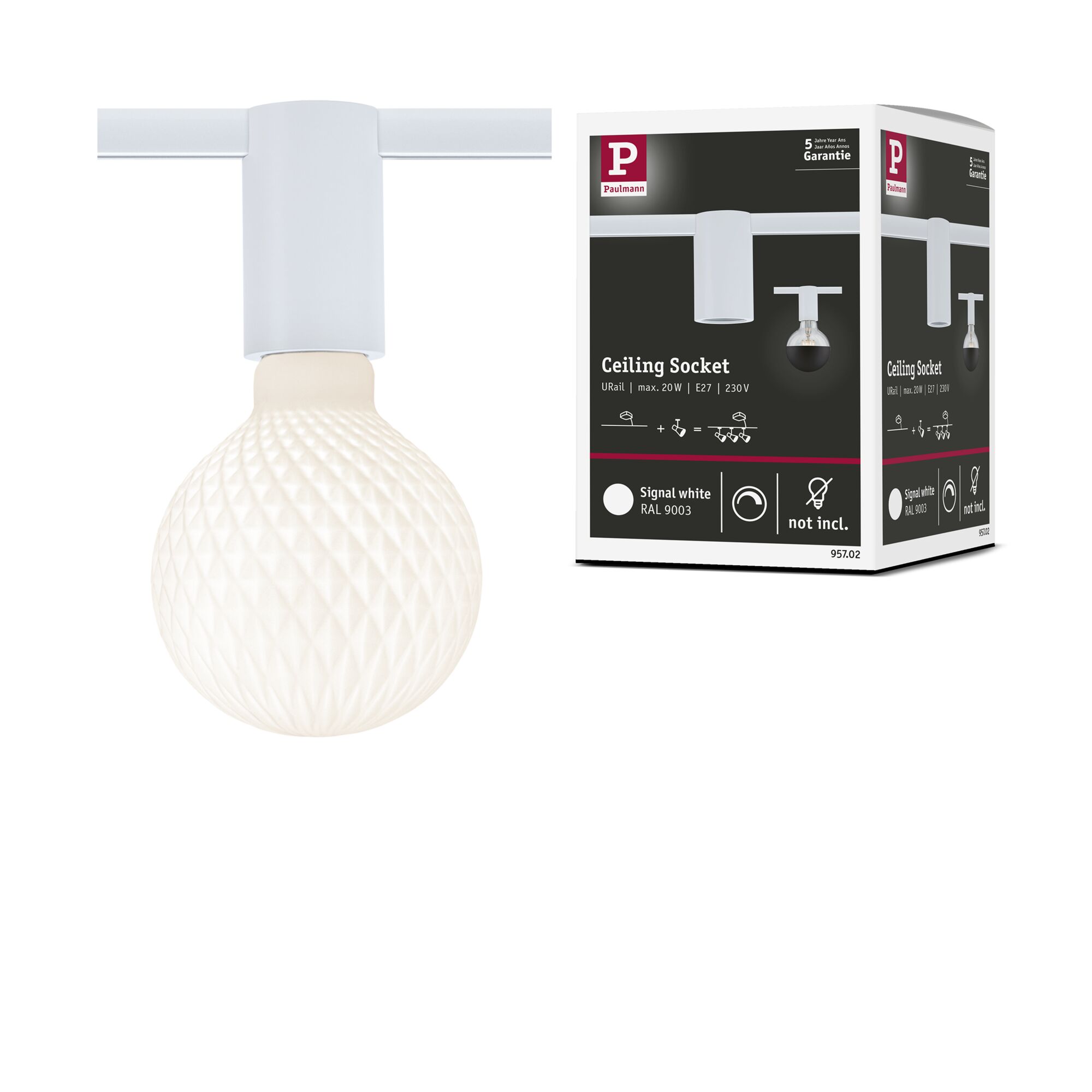 Oprawa Ceiling Socket URail max 1x20W E27 230V biały RAL 9003 / metal