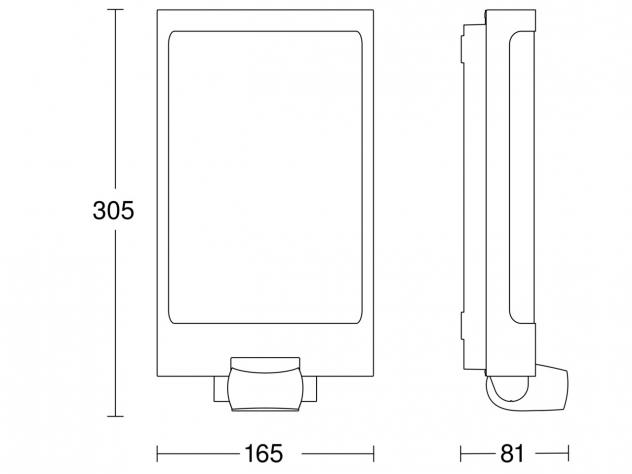Obudowa z odpornego na promieniowanie UV plastiku zapewnia trwałość i odporność na warunki atmosferyczne (IP44) oraz uszkodzenia mechaniczne (IK07). Wbudowane źródło światła LED o mocy 9,3 W emituje ciepłe światło o barwie 3000K i strumieniu 946 lumenów – idealne do podkreślania architektury i zapewniania bezpieczeństwa po zmroku. Lampa wykorzystuje pasywny czujnik podczerwieni (PIR) o kącie detekcji 180°, który wykrywa ruch w zasięgu do 10 m (stycznie) i 3 m (promieniowo). Użytkownik może dostosować czas świecenia w zakresie od 8 sekund do 35 minut oraz regulować czułość zmierzchową (2–2000 lx), co pozwala na precyzyjne dopasowanie pracy urządzenia do warunków otoczenia.