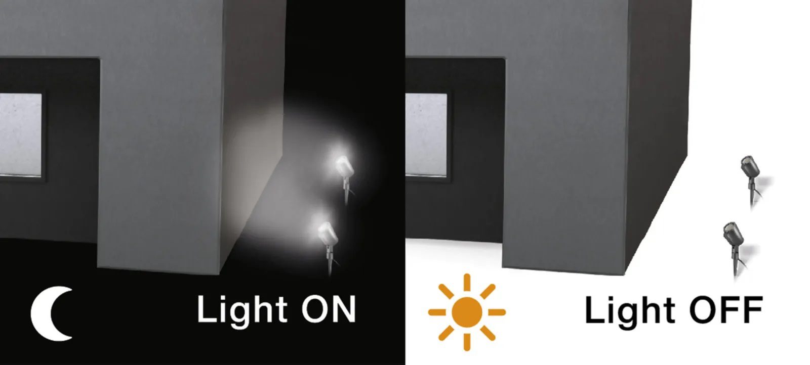 Spot Garden Nightautomatic zapewnia doskonałe oświetlenie roślin w ogrodzie. Dzięki obrotowej wytrzymałej głowicy można bez wysiłku kierować światło w wybraną stronę.