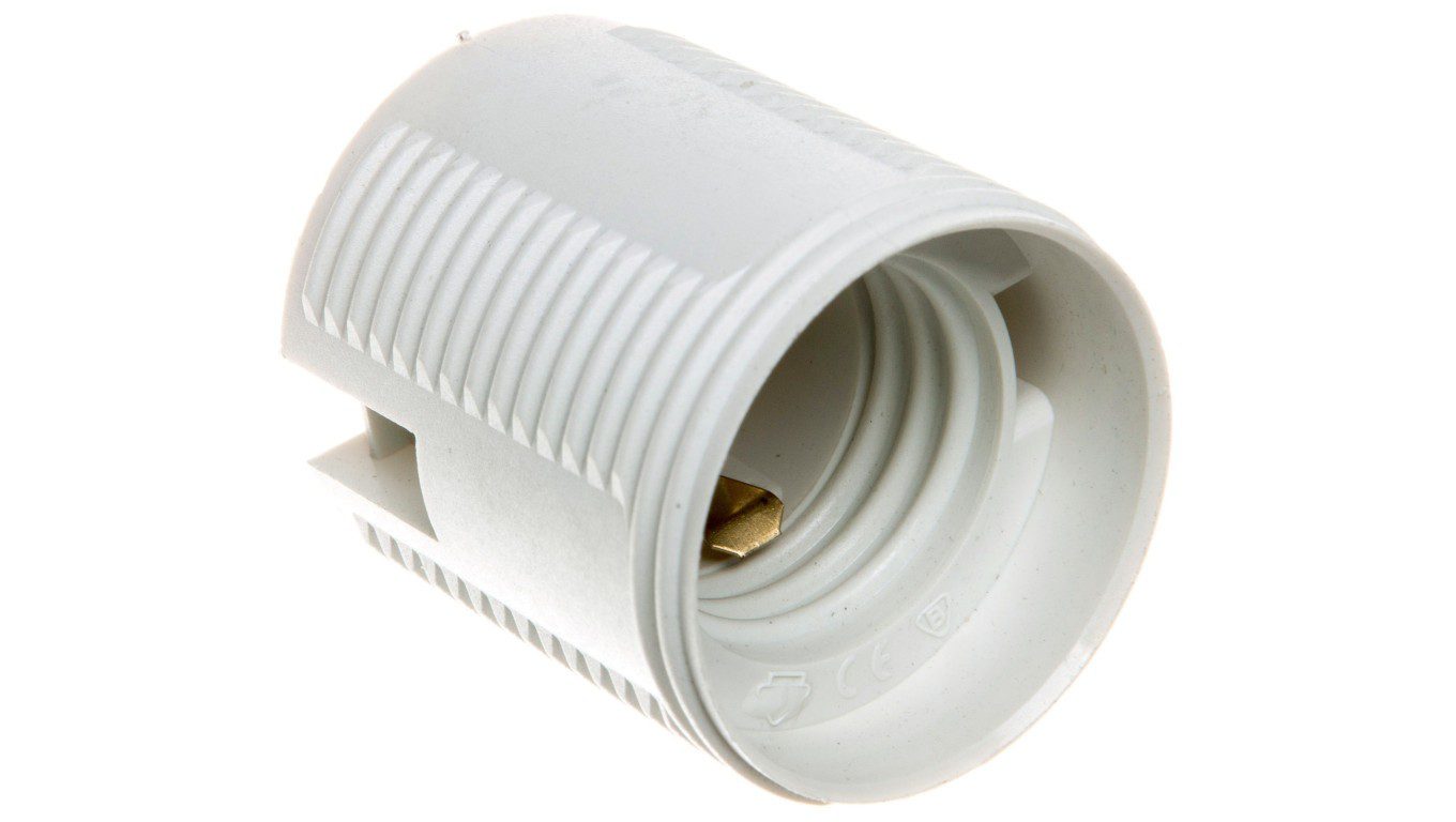Wysokiej jakości oprawka plastikowa karbowana E27 w kolorze białym, idealna do różnych zastosowań.
