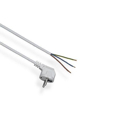 Przewód przyłączeniowy z zalewaną wtyczką kątową UNISCHUKO biały, idealny do różnych zastosowań zarówno w domach, jak i w biurach.