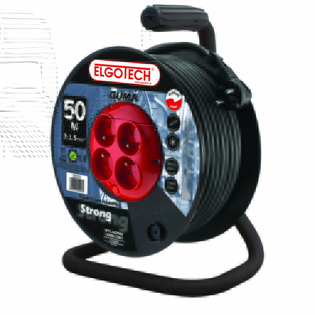 PZB-40-50G Przedłużacz bębnowy 4x Z/U okrągły kątowa 50m H05RR-F 3×1.5 guma + termik