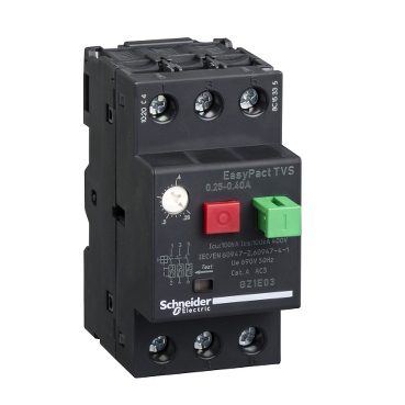 GZ1E03 jest wyłącznikiem silnikowym z serii EasyPact TVS firmy Schneider Electric. Zapewnia zabezpieczenie zwarciowe i przeciążeniowe. Umożliwia sterowanie silnikiem (załączanie/wyłączanie) za pomocą przycisków.