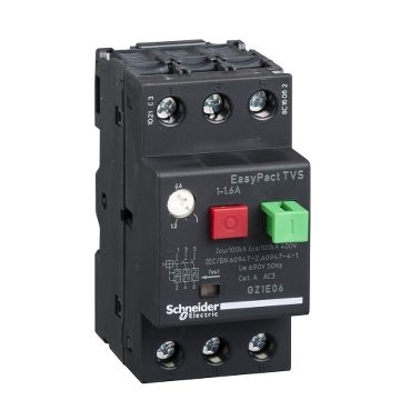 GZ1E06 to wyłącznik silnikowy z serii EasyPact TVS, zapewniający ochronę silników przed przeciążeniem i zwarciem.