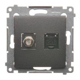 SIMON 54 MODUŁ ANTRACYT GNIAZDO TV TYP F + GNIAZDO KOMPUTEROWE 1X UAE 8 CAT.6 FTP PŁASKIE