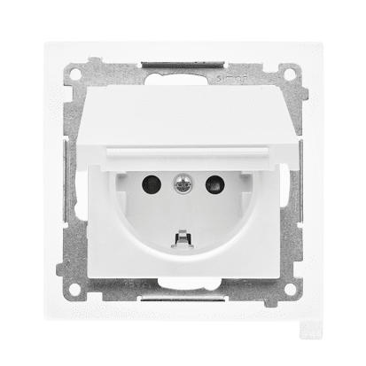 SIMON 55 Moduł Biały Mat Gniazdo 1x Schuko z/U z Przesłonami z Klapką IP44